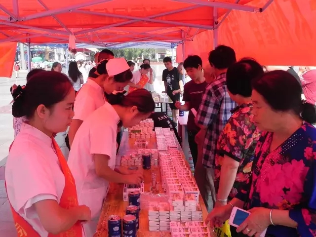 圖為:市民在現(xiàn)場(chǎng)免費(fèi)品嘗山西同仁康大藥房提供的太極藿香正氣口服液