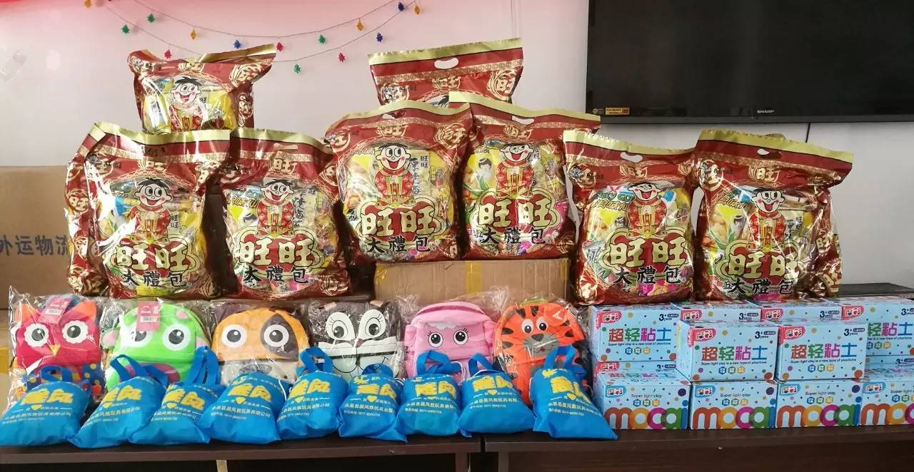 孩子們背著小書包、吃著旺旺食品、看著做好的玩具,小臉上滿滿的幸福?。。《覀円灿X得很快樂、很滿足、很幸福!