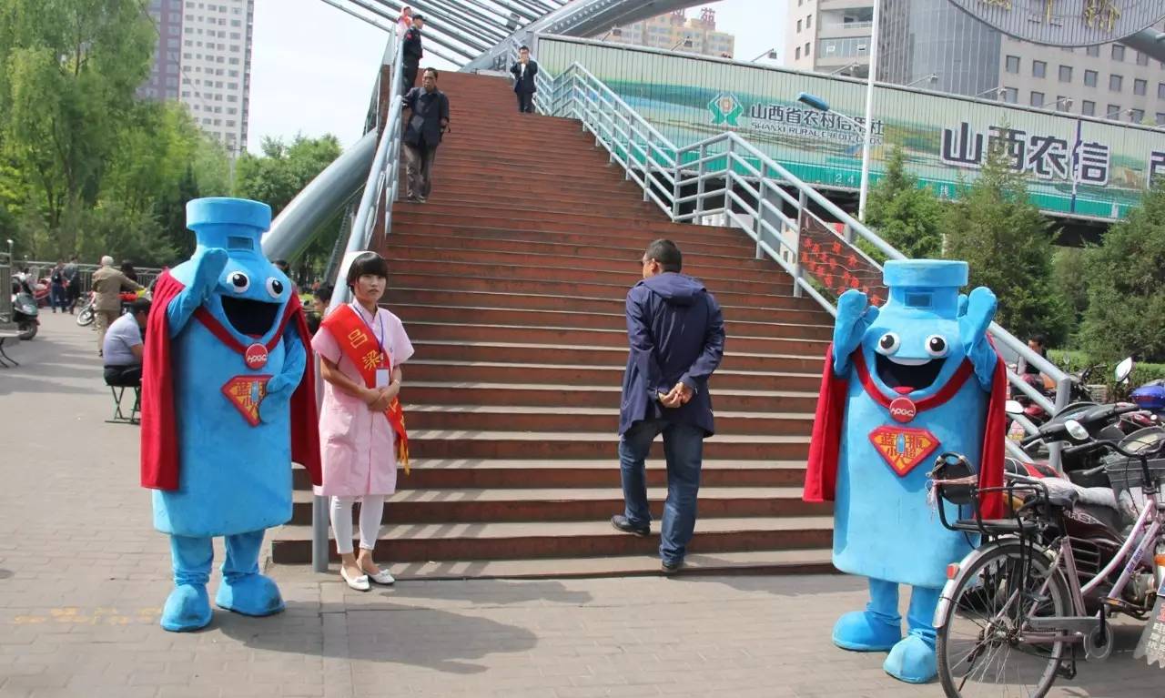 藍(lán)瓶超人與小朋友們一起互動(dòng)