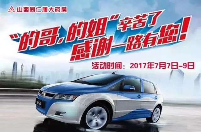 山西同仁康大藥房太原市與孝義市各藥房在7月7日--9日為“的哥、的姐”送上我們***真摯的祝愿,我們?yōu)槟呐谥屏讼顩霾韫┠赓M(fèi)飲用。并且現(xiàn)場掃碼即可獲贈價值26.3元的消暑防治藥品(天士力集團(tuán)的藿香正氣滴丸和哈藥集團(tuán)的諾氟沙星膠囊),同時現(xiàn)場還免費(fèi)贈送您價值5元的優(yōu)惠券四張,持此券您可在山西同仁康各藥房特惠購藥。